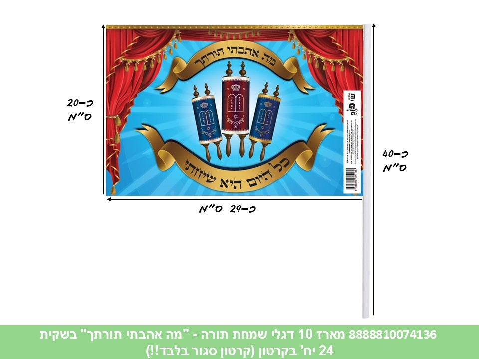 מארז 10 דגלי שמחת תורה - "מה אהבתי תורתך" בשקית (קרטון סגור בלבד!!) (24)