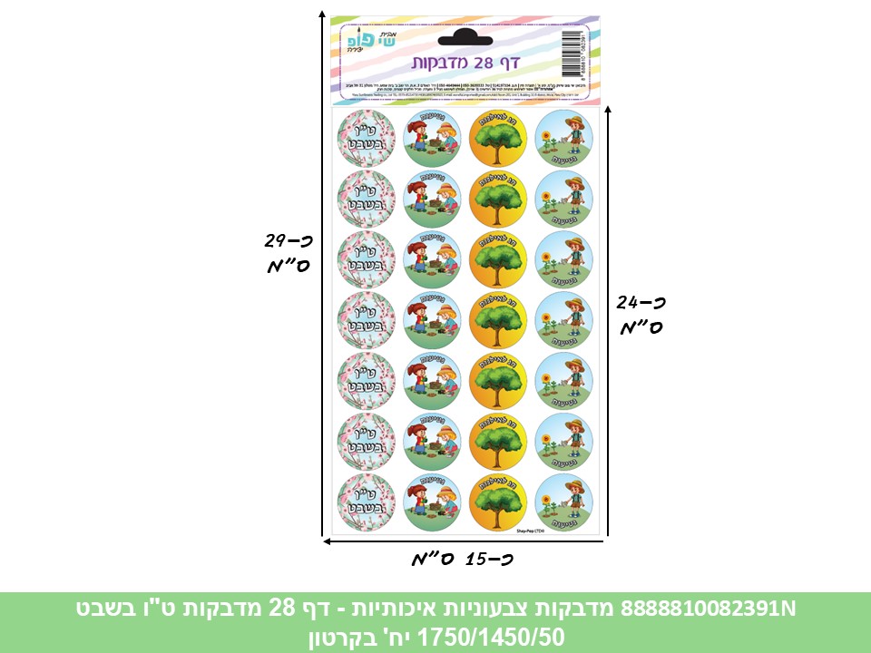 מדבקות צבעוניות איכותיות - דף 28 מדבקות ט"ו בשבט (1750/1450/50) (ART)